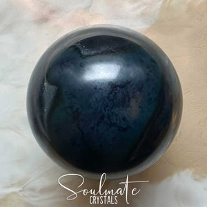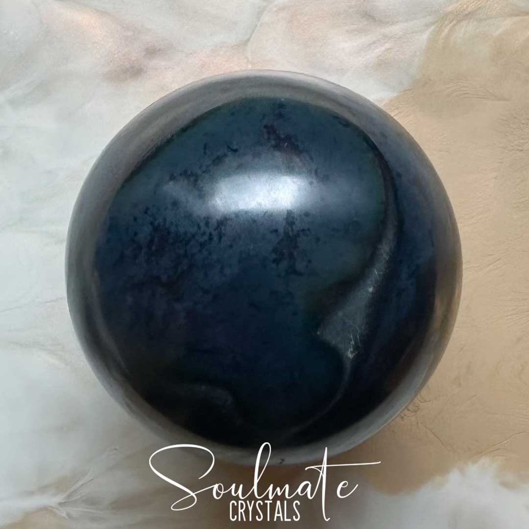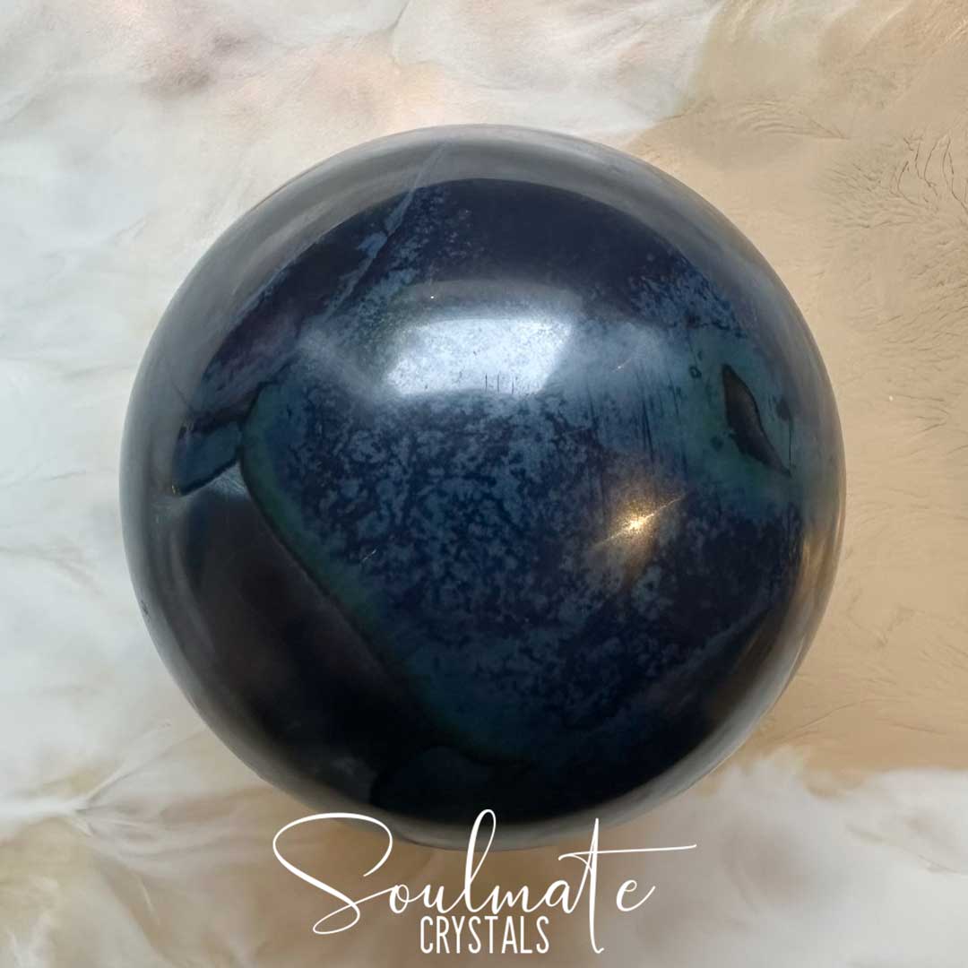 You will receive the one Vivianite Polished Crystal Sphere pictured size approximately 64mm, 341g. This rare, medium-large sized Vivianite Sphere is polished to perfection showcasing the stunning blue-green patterning and is sold with a ring stand for immediate display and enjoyment.