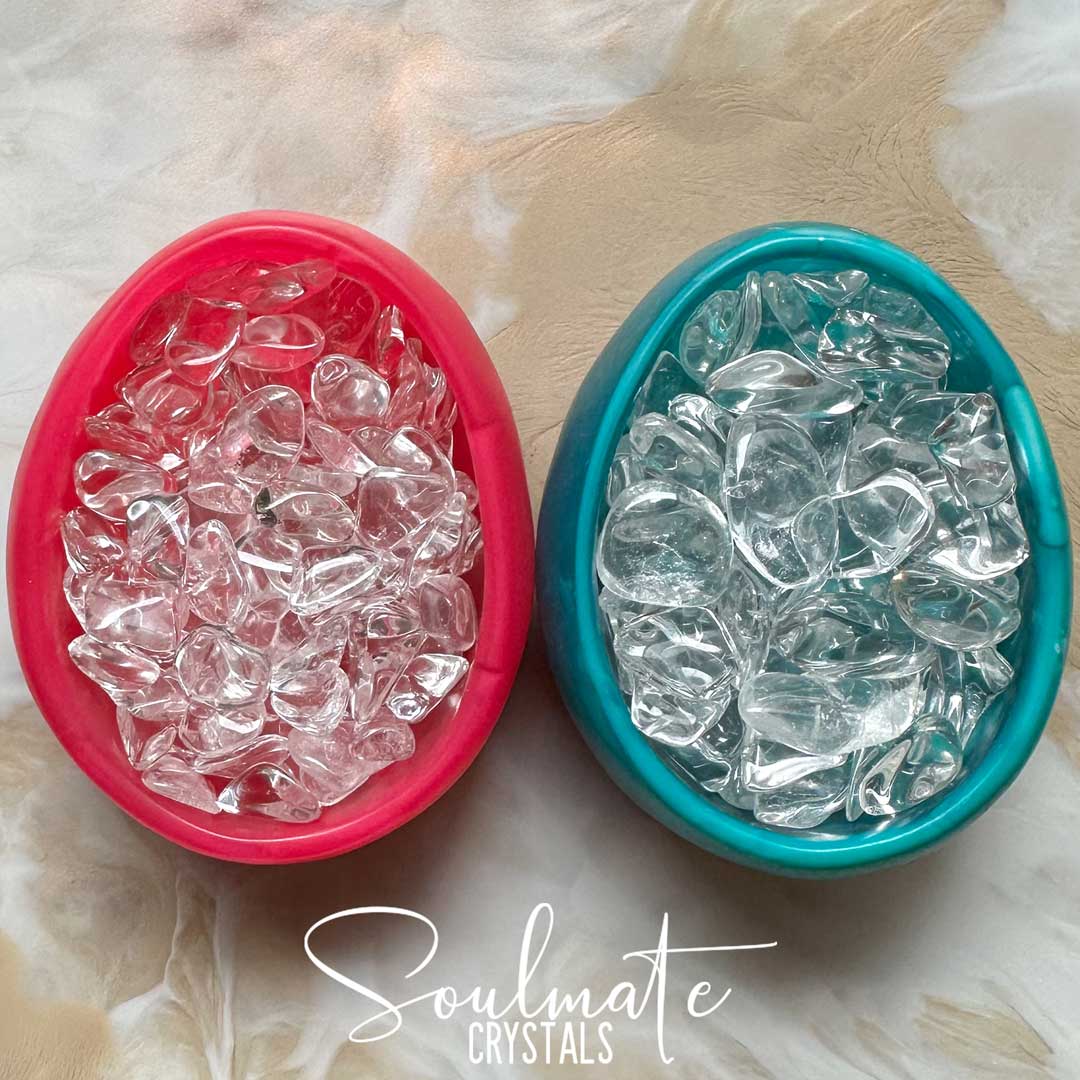 Each pack contains a randomly scooped mix of stones totalling the nominated pack weight and is not customisable. This is a high-grade Brazilian Clear Quartz ideally suited to a variety of crystal practices, altar display, crystal grids or indirect method gem elixirs. Both crystal size is shown in the listing photograph (pink bowl xs, blue bowl small) along with a size reference comparison. Choose your preferred size via the options menu below.