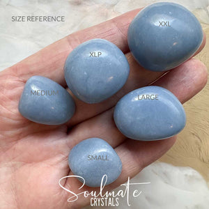 You will receive one Angelite Tumbled Stone Grade AA from the lot pictured size approximately: